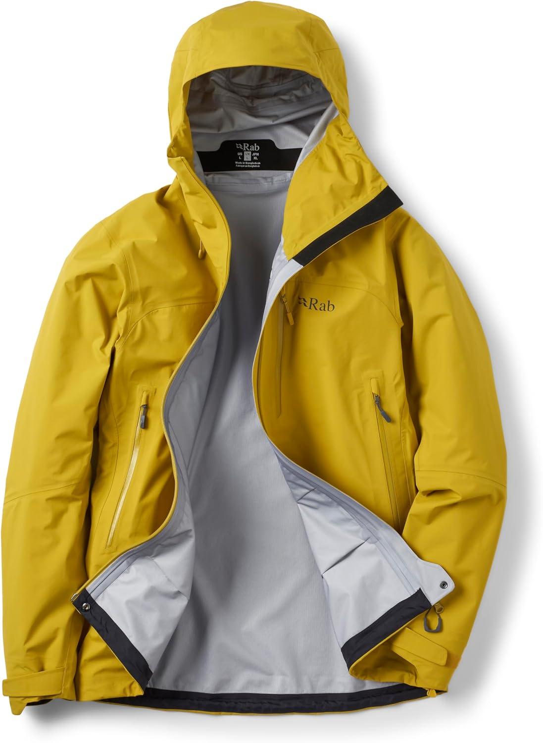 Rab Men’s Firewall Mountain Jacket – Lightweight Waterproof Hooded Coat for Climbing & Hiking(Dark Pollen)