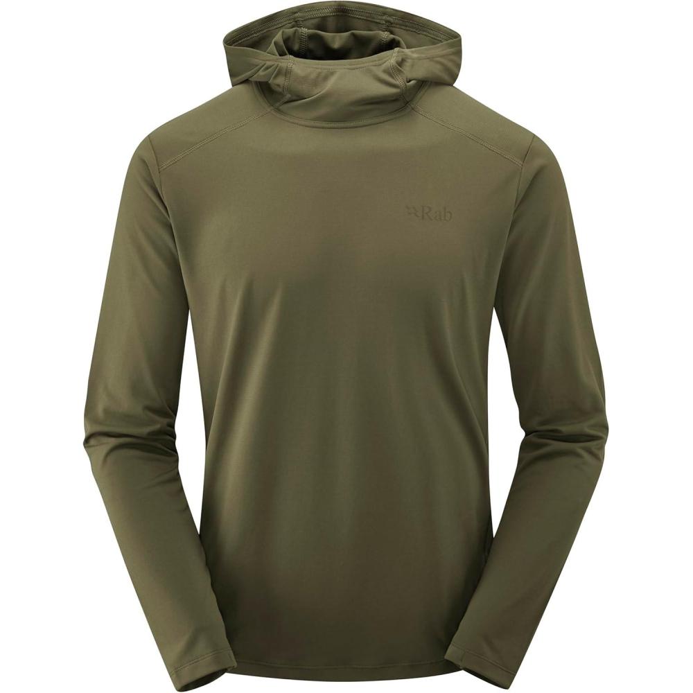 Rab Men’s Force Hoody Lightweight Long-Sleeve Hooded Baselayer Shirt for Hiking, Climbing, & Trail Running(Olive (Olive))