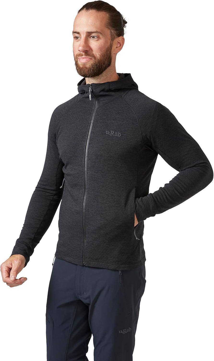 Rab Men’s Nexus Hoody – Full-Zip Lightweight Fleece Jacket for Hiking & Climbing(Black)