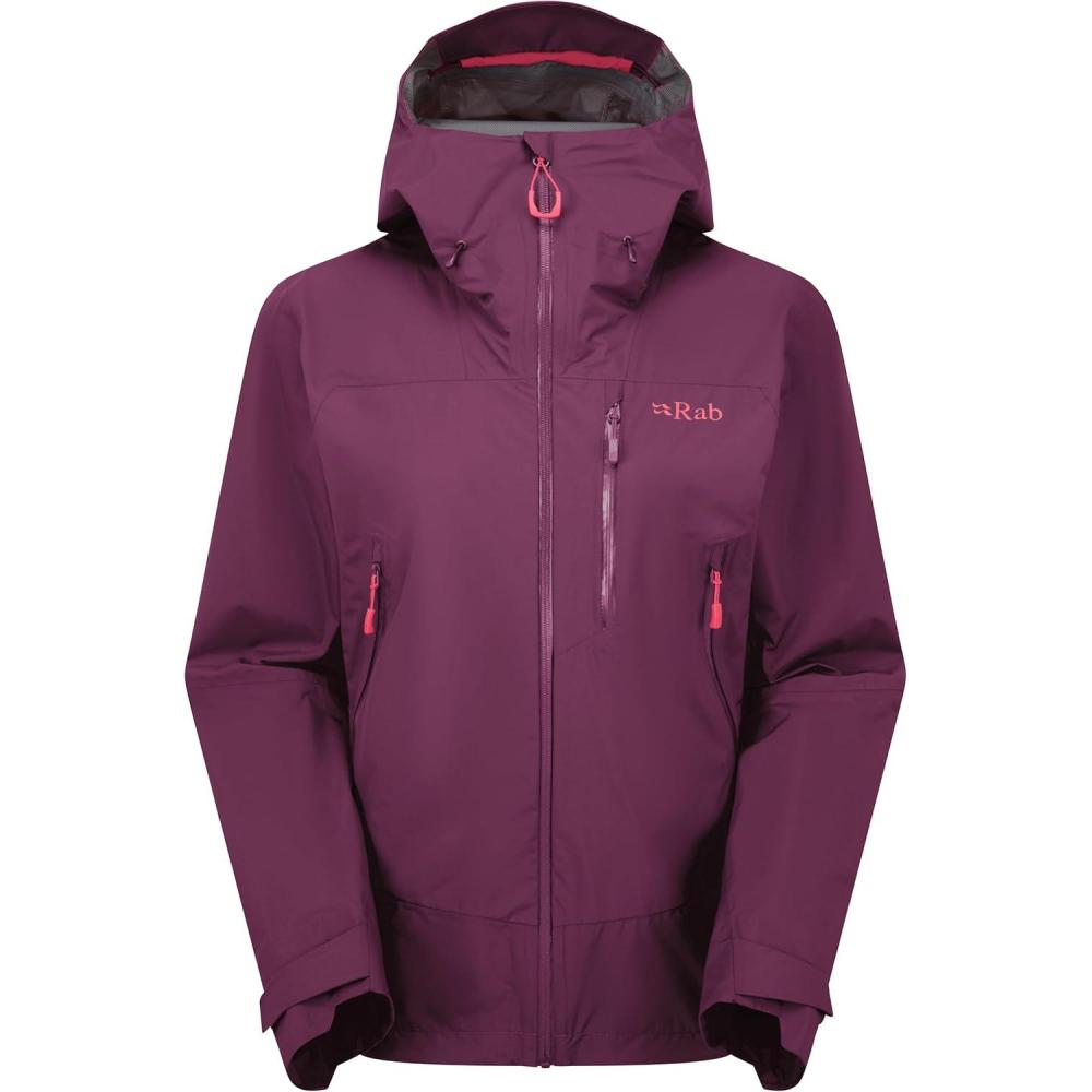 Rab Women’s Downpour Mountain Jacket – Lightweight Waterproof Hooded Coat for Hiking & Trekking(Mulberry)