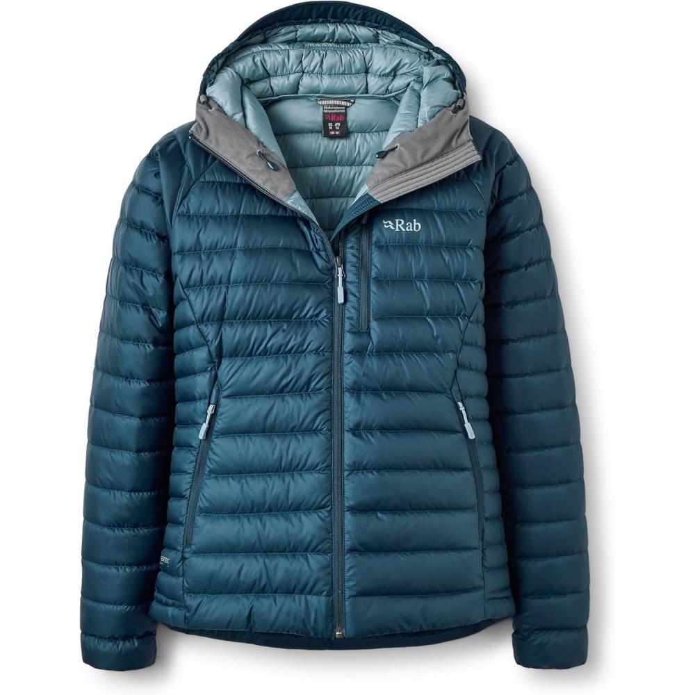 Rab Women’s Microlight Alpine 700-Fill Down Hooded Puffer Jacket for Hiking & Skiing(Tempest Blue)