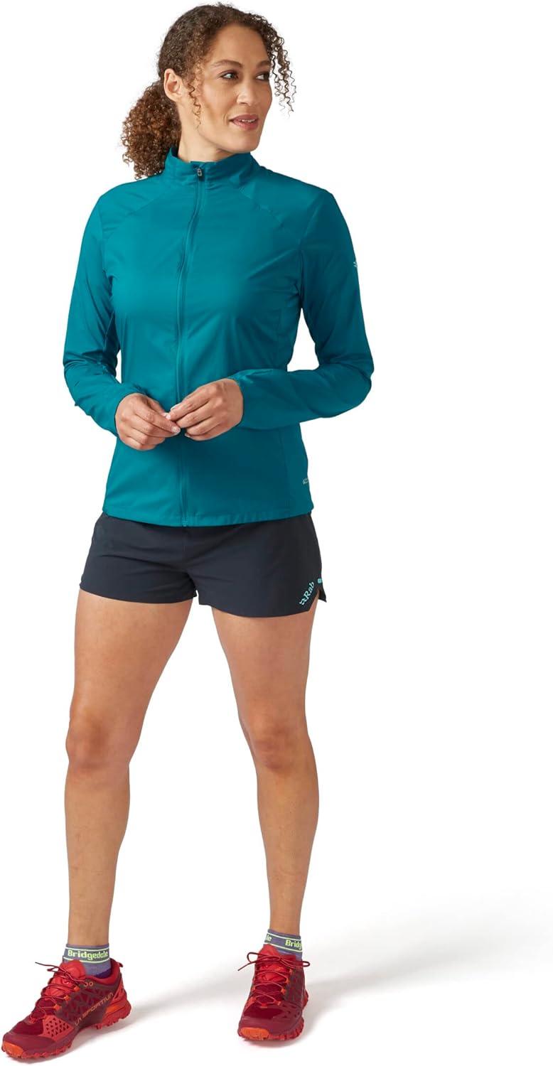 The Rab Women’s Windveil Jacket is a technical windbreaker that offers ultralight coverage constructed with trail runners in mind. It’s wind-resistant, water-resistant, and air permeable. An uptick compared to standard breathable shells, air-permeable shells start breathing the minute you zip up instead of after you start sweating. Rab sized the mesh back panel to accommodate hydration reservoirs comfortably and gave it body-mapped fabrics to better regulate breathability.